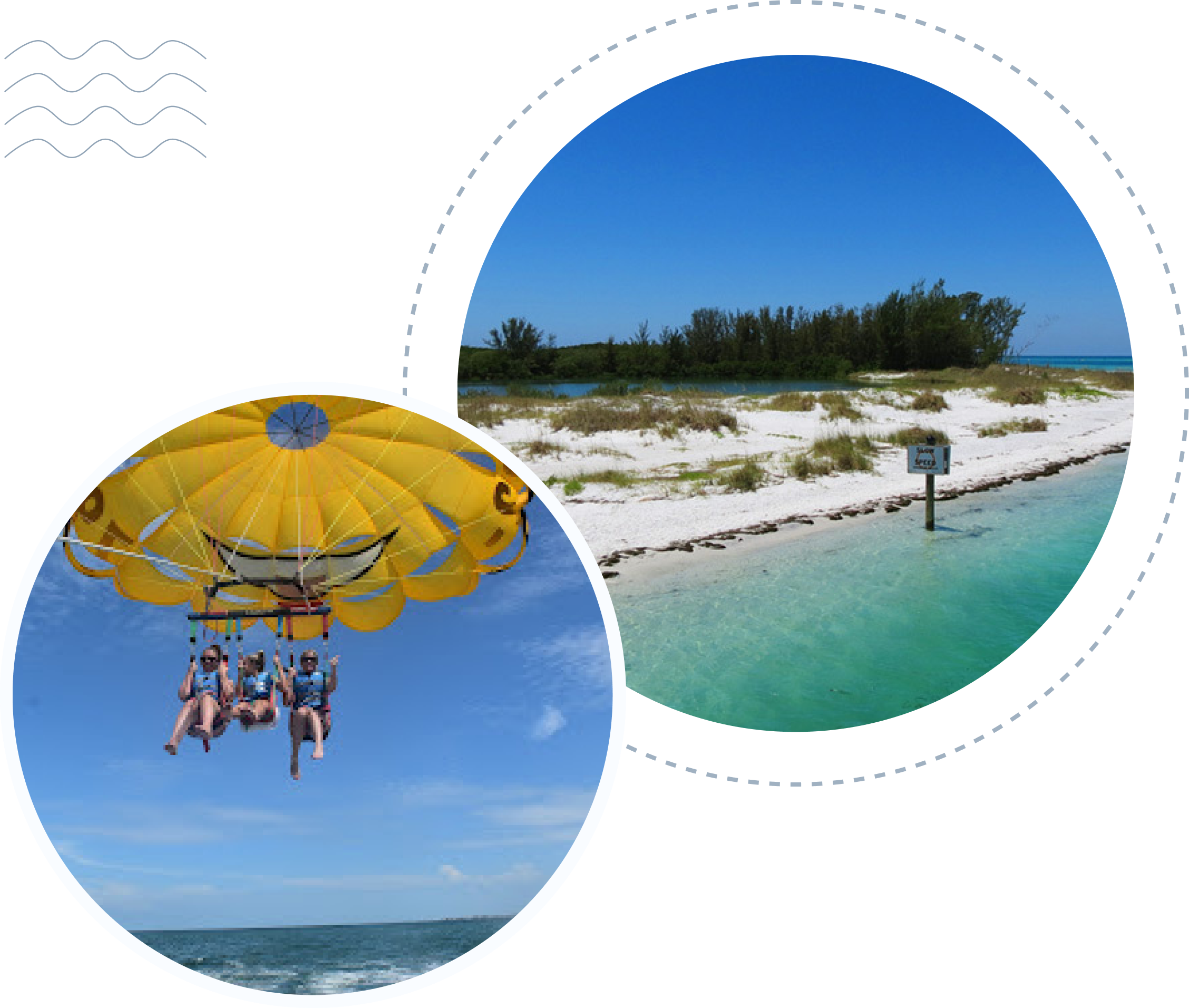 Experience a thrill of a lifetime as you SOAR above Anna Maria Island and the Gulf Coast. Watch for dolphins, stingrays, and ocean life through crystal-clear water below. Our USCG-licensed crew ensures gentle takeoffs and smooth landings — with a dry finish or a refreshing toe dip, your choice!